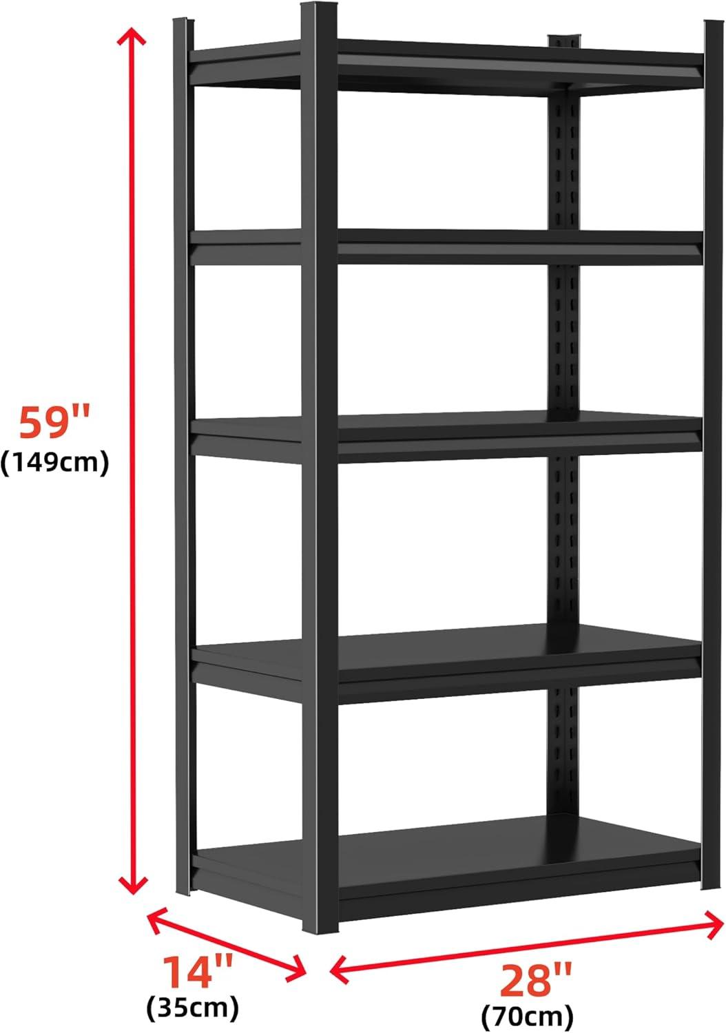 48" W Metal Garage Shelving Unit, Heavy Duty Storage Garage Shelves with High Load Capacity, 5-Tier Big Metal Shelf, Ideal for Warehouse and Basement, Black,78" H(59" H x 28" W x 14" D)