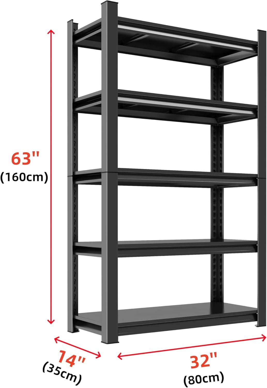 48" W Metal Garage Shelving Unit, Heavy Duty Storage Garage Shelves with High Load Capacity, 5-Tier Big Metal Shelf, Ideal for Warehouse and Basement, Black,78" H(63" H x 32" W x 14" D)