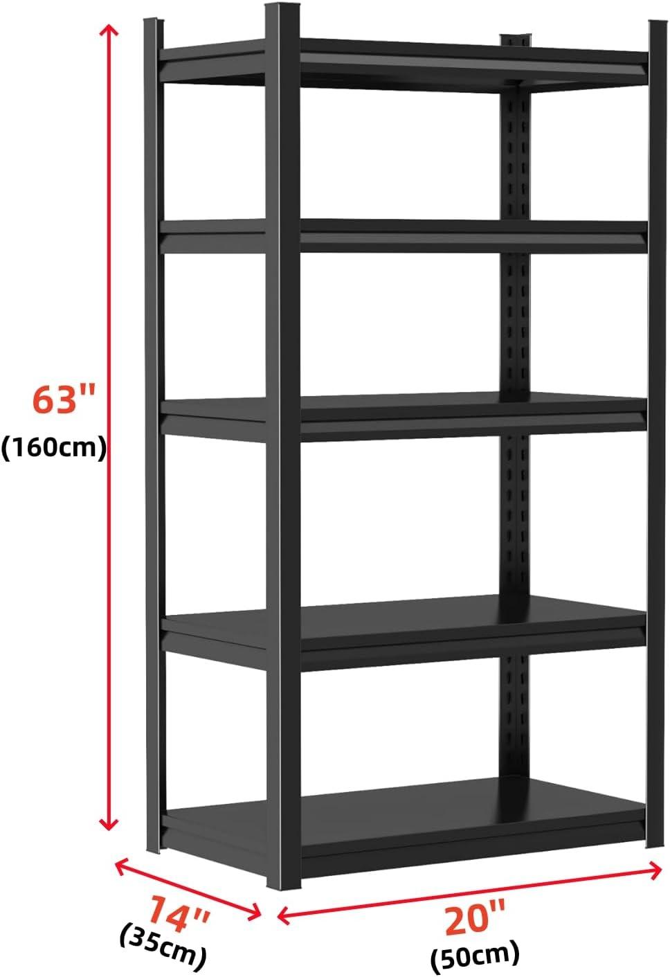 48" W Metal Garage Shelving Unit, Heavy Duty Storage Garage Shelves with High Load Capacity, 5-Tier Big Metal Shelf, Ideal for Warehouse and Basement, Black,78" H(63" H x20 W x 14" D)