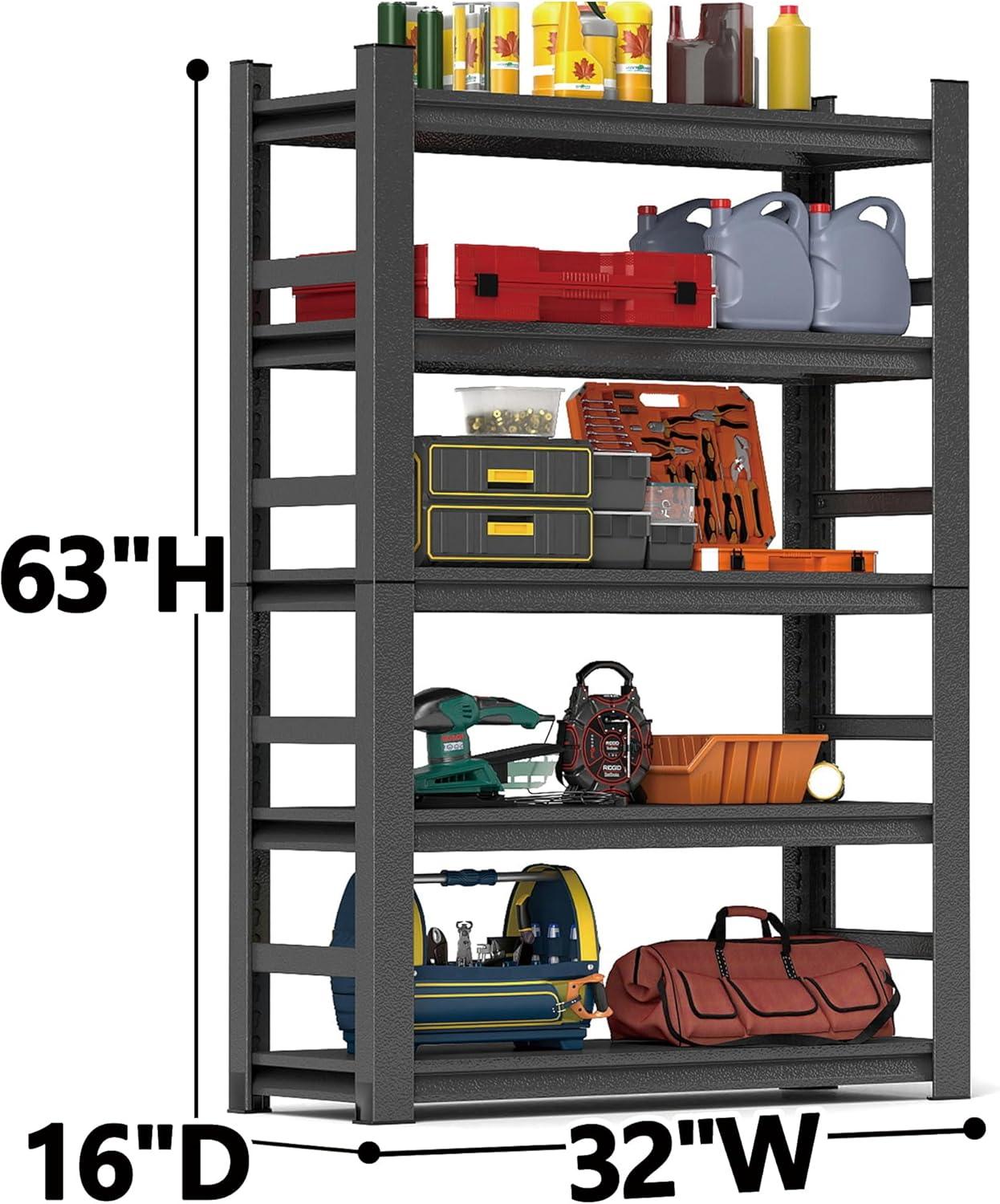 48″ W Metal Garage Shelving Unit, Heavy Duty Storage Garage Shelves with High Load Capacity, 5-Tier Big Metal Shelf, Ideal for Warehouse and Basement, Black,78″ H(63″ H x 32″ W x 14″ D)