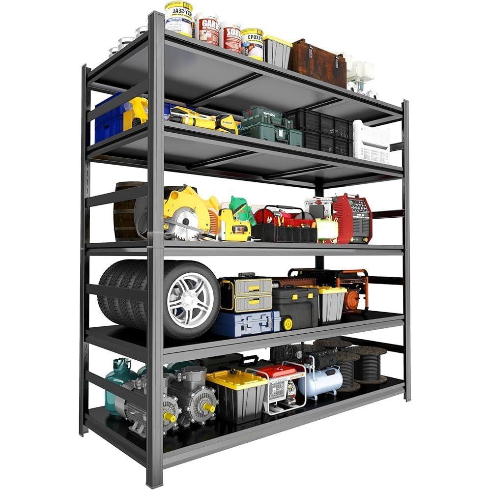 image48quot W Metal Garage Shelving Unit Heavy Duty Storage Garage Shelves with High Load Capacity 5Tier Big Metal Shelf Ideal for Warehouse and Basement Black78quot H87 H x 472 W x 236 D