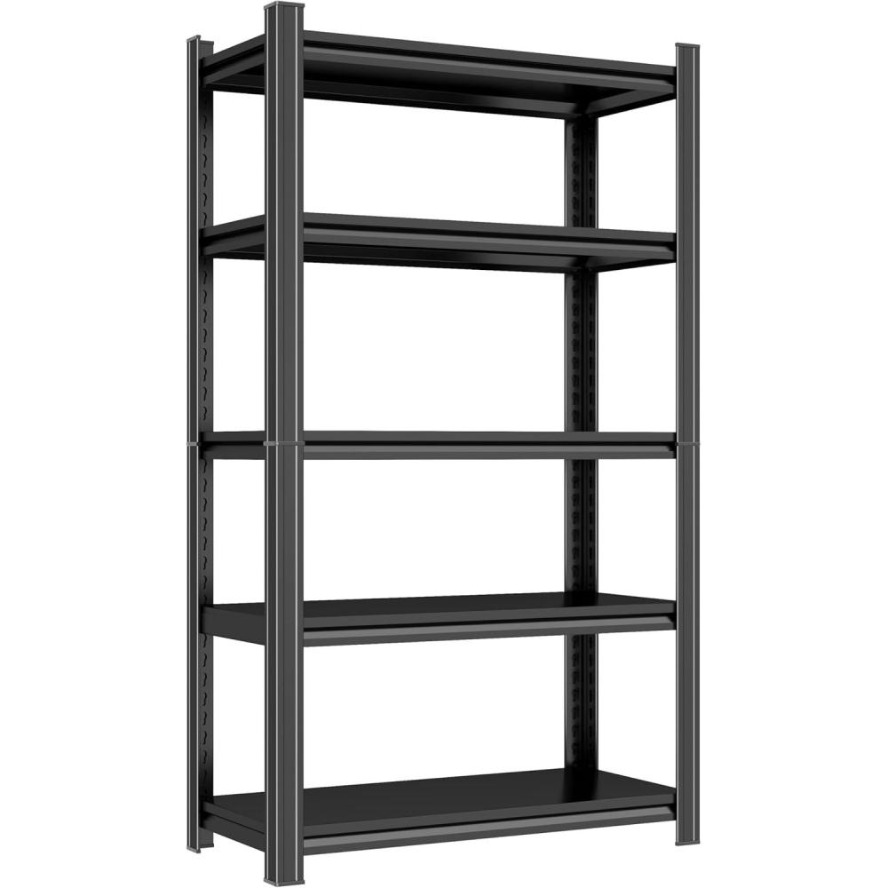 Garage Shelving, 72″ H × 48″ W Heavy Duty Metal Shelving – Easy to Assemble, Adjustable 5-Tier Storage Shelves, Double-Thickened Columns, 3000 lbs Capacity, for Garage, Pantry Storage, Black(5-Tier 63″ H x 45″ W x 18″ D)