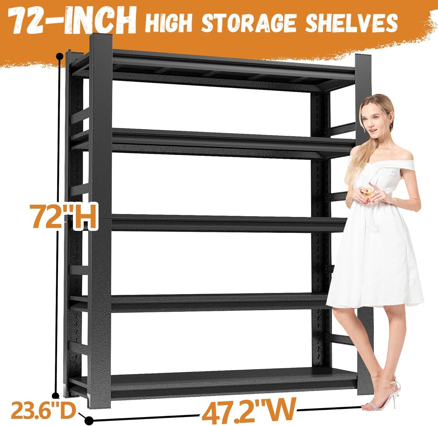 Kitchen Shelf Heavy Duty All Metal 5 Tier Adjustable Storage Shelves Organizer Standing Multifunctional Utility Kitchen Racks Shelving Unit for Galley Storage, 47.2" W×23.6" D×72" H, Black(47.2" W×23.6" D×72.0" H)