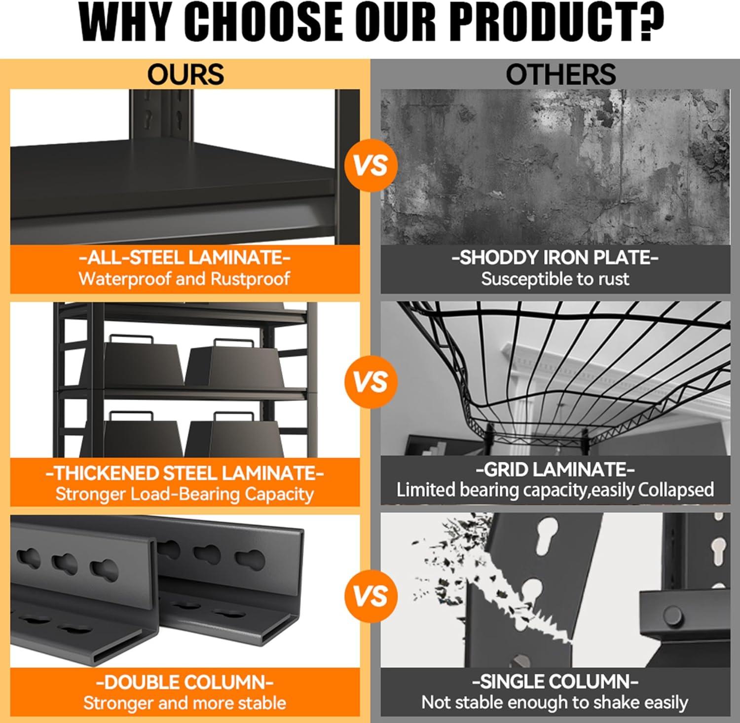 Our garage shelving is made from high-strength steel, providing a solid and reliable guarantee for your storage needs. Whether it's heavy tools or large machine parts, they will rest securely on the shelves The shelves are designed with space utilization in mind, both the top of the garage and the floor can be fully utilized, making your garage neat and orderly, and you never have to worry about not being able to find anything The height of the shelves can be adjusted according to your actual needs, easy to cope with different sizes and weights of items, easy access to the items, adjust the shelf layout at any time to achieve personalized storage The shelf assembly process is quick and easy. We provide detailed assembly instructions and necessary tools to save you time and effort, so you can enjoy a neat and organized garage environment faster The surface of the shelves is smooth and flat, not easy to accumulate dust, and very easy to clean. You just need to wipe it with a damp cloth to keep the shelves clean and tidy