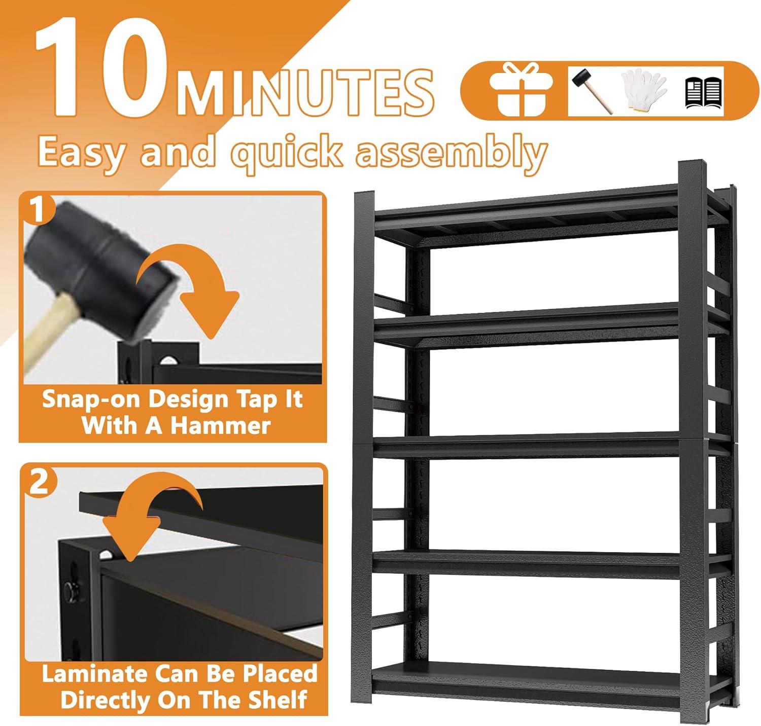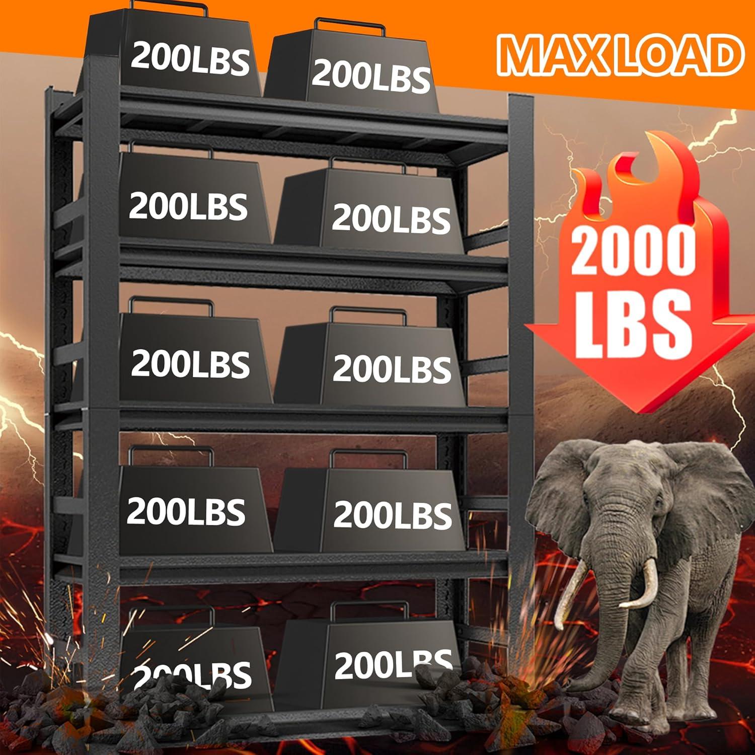 imageKitchen Shelves Organizer 2000lbs of 5 Tier Adjustable Shelving Heavy Duty Metal Storage Rack Unit and Multifunctional Utility Shelf for Kitchen Storage 354quot W  158quot D  72quot H Blackwith fence 78H x 4724W x 18D
