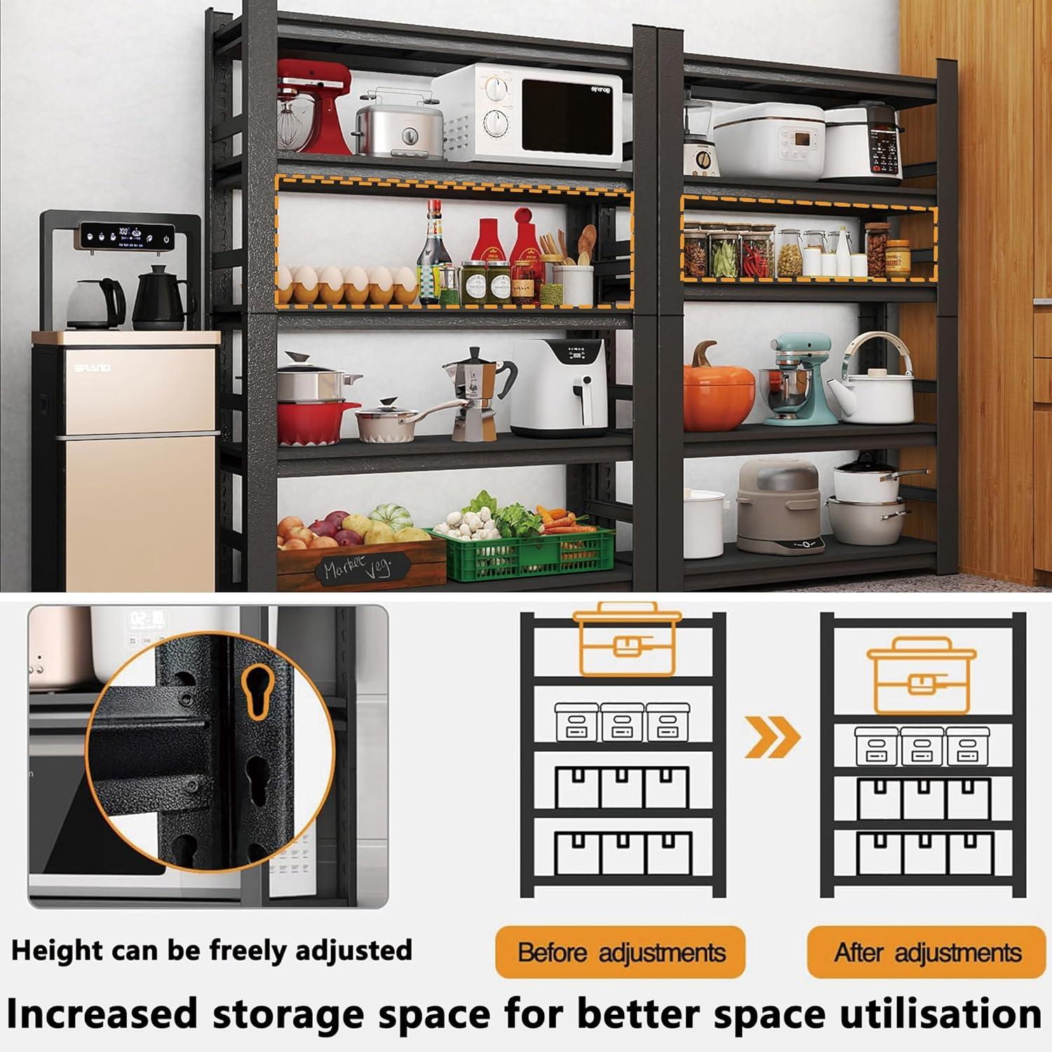 imageKitchen Shelf Heavy Duty All Metal 5 Tier Adjustable Storage Shelves Organizer Standing Multifunctional Utility Kitchen Racks Shelving Unit for Galley Storage 472quot W236quot D72quot H Black63 H x 32 W x 157 D
