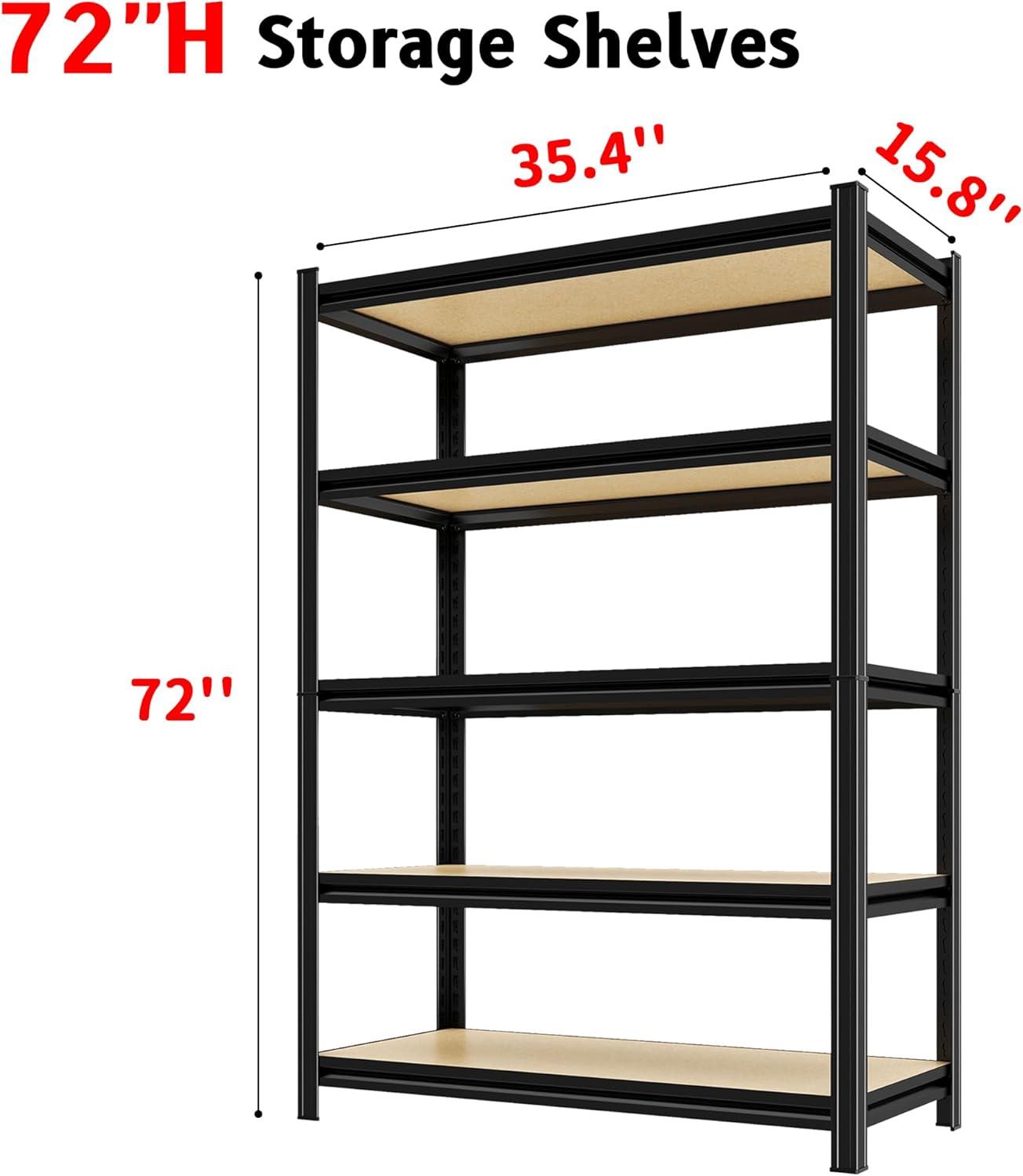 Kitchen Shelf Heavy Duty All Metal 5 Tier Adjustable Storage Shelves Organizer Standing Multifunctional Utility Kitchen Racks Shelving Unit for Galley Storage, 47.2" W×23.6" D×72" H, Black(72"H x 35.4"W x 15.8"D)