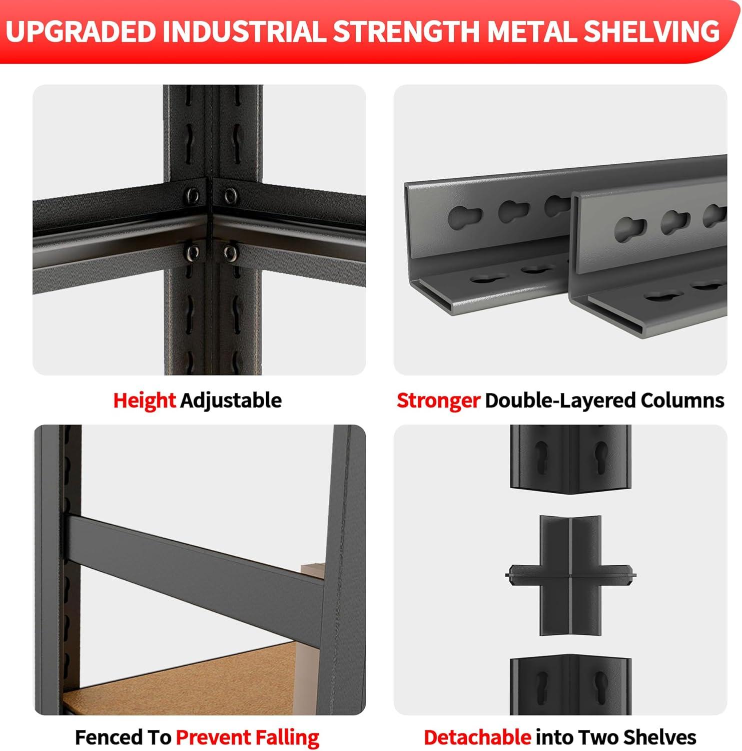 imageKitchen Shelf Heavy Duty All Metal 5 Tier Adjustable Storage Shelves Organizer Standing Multifunctional Utility Kitchen Racks Shelving Unit for Galley Storage 472quot W236quot D72quot H Black63 H x 32 W x 157 D