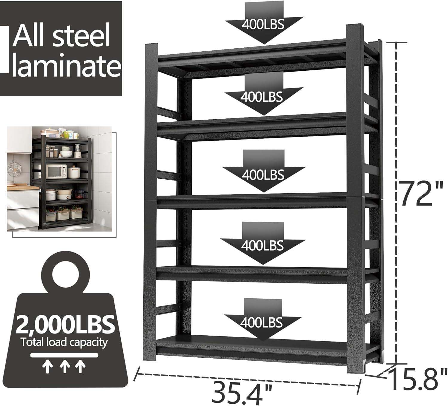 Get more for your money with our exclusive bundle deals on Kitchen Shelves Organizer 2000lbs of 5 Tier Adjustable Shelving Heavy Duty Metal Storage Rack Unit and Multifunctional Utility Shelf for Kitchen Storage, 35.4" W × 15.8" D × 72" H, Black(72″ H x 35.4″ W × 15.8″ D) and accessories.