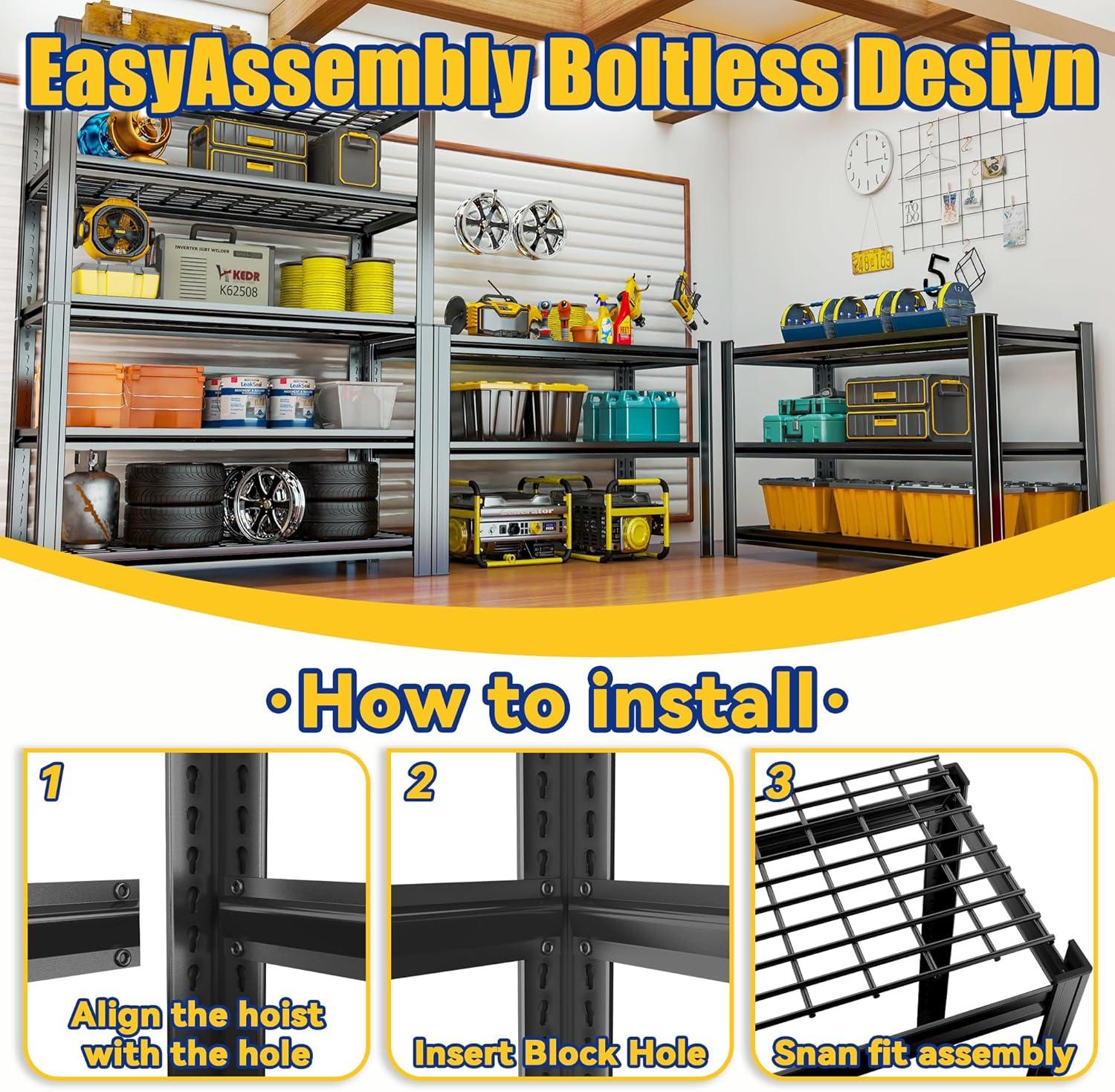 【Easy to assemble】This storage shelf is designed with gourd holes and does not require any nuts, and we will provide mallet, gloves and assembly instructions to make the assembly of this shelving unit much simpler