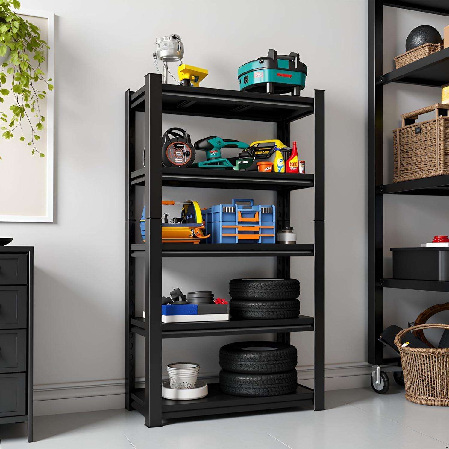 Metal Garage Shelving Unit, Heavy Duty 5-Tier Adjustable Storage shelves, Steel Shelving, 3000 lbs Capacity, Industrial Shelves for Heavy Tools and Equipment, Ideal for Garage, Basement, Black, 72"(4-Tier 59"H x 32"W x 14"D)