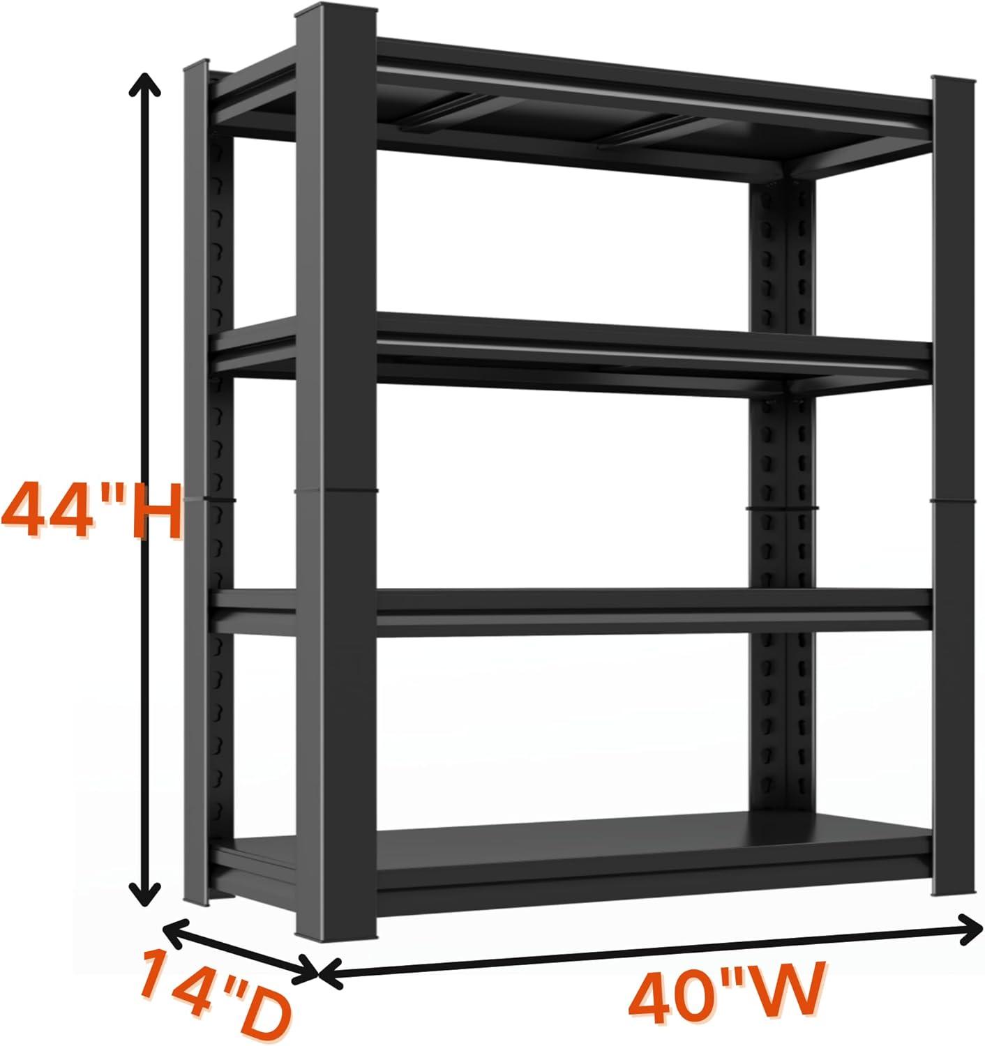 Metal Garage Shelving Unit, Heavy Duty 5-Tier Adjustable Storage shelves, Steel Shelving, 3000 lbs Capacity, Industrial Shelves for Heavy Tools and Equipment, Ideal for Garage, Basement, Black, 72"(4-Tier 44"H x 40"W x 14"D)