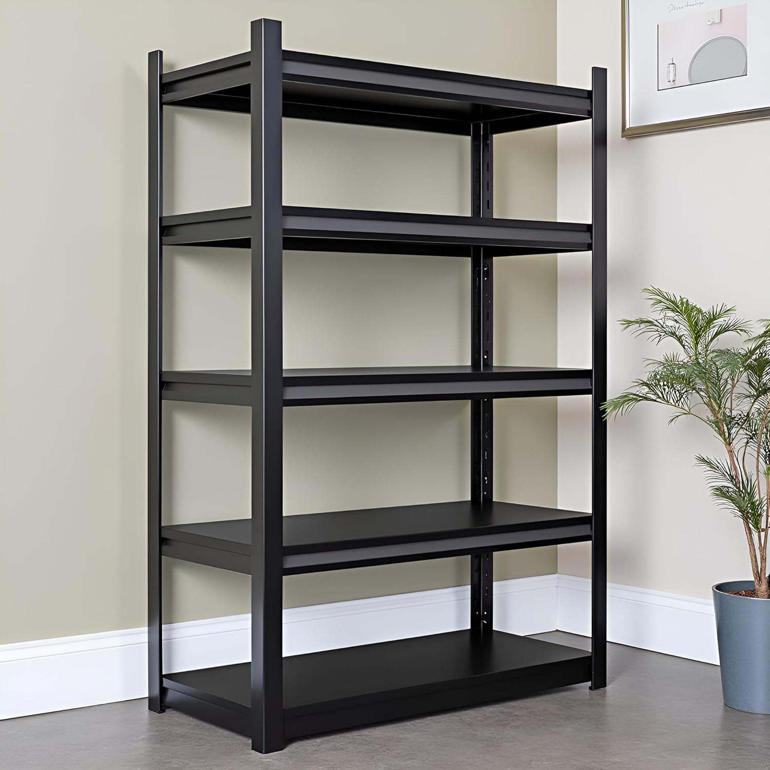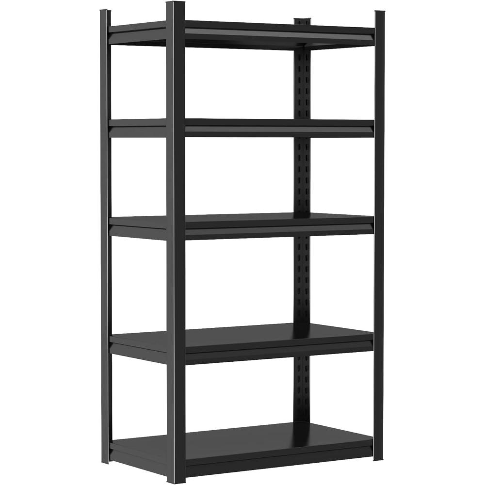 Metal Garage Shelving Unit, Heavy Duty 5-Tier Adjustable Storage shelves, Steel Shelving, 3000 lbs Capacity, Industrial Shelves for Heavy Tools and Equipment, Ideal for Garage, Basement, Black, 72″(5-Tier 63.0″ H x 19.7″ W x 45.3″ D)