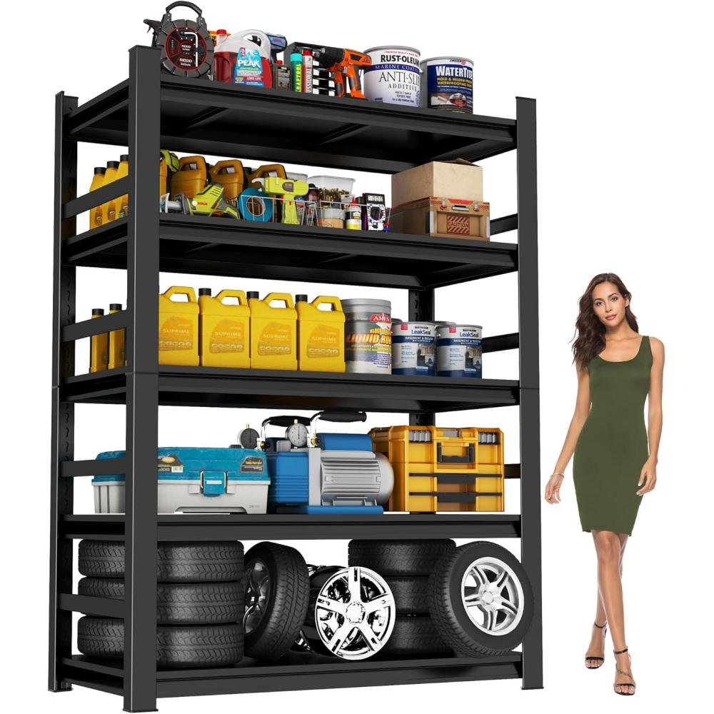 Garage Storage Shelving – Adjustable 5-Tier Heavy Duty Metal Shelving, 2500lbs High Load Capacity, Multi-Functional for Garage, Warehouse, or Home Storage, 63″ H x 16″ D x 32″ W, Black