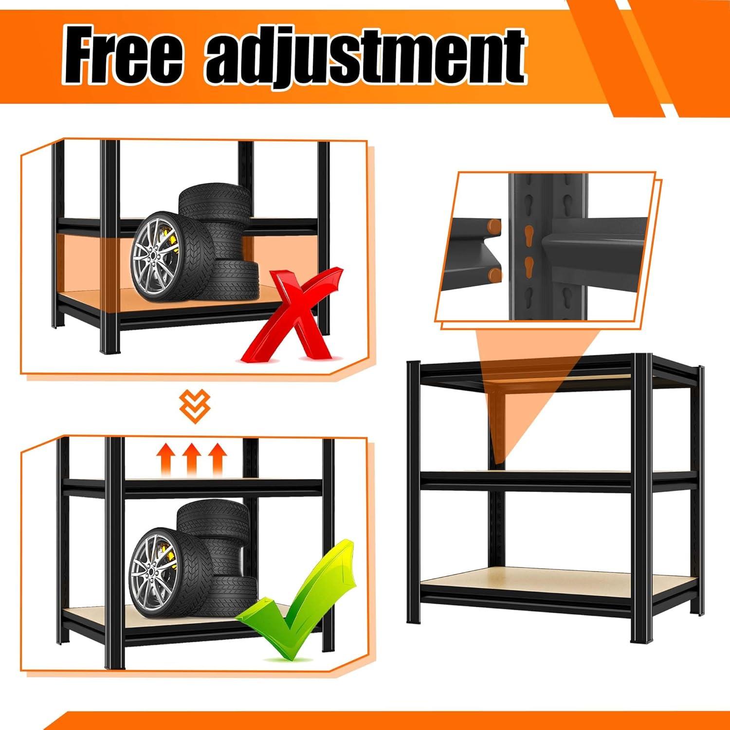 Metal Garage Shelving Unit, Heavy Duty 5-Tier Adjustable Storage shelves, Steel Shelving, 3000 lbs Capacity, Industrial Shelves for Heavy Tools and Equipment, Ideal for Garage, Basement, Black, 72″(wood 45.7″H x 23.6″W x 11.8D)